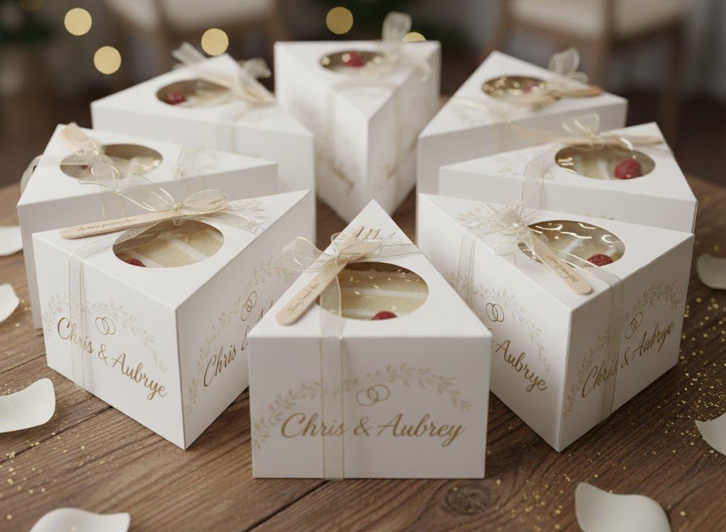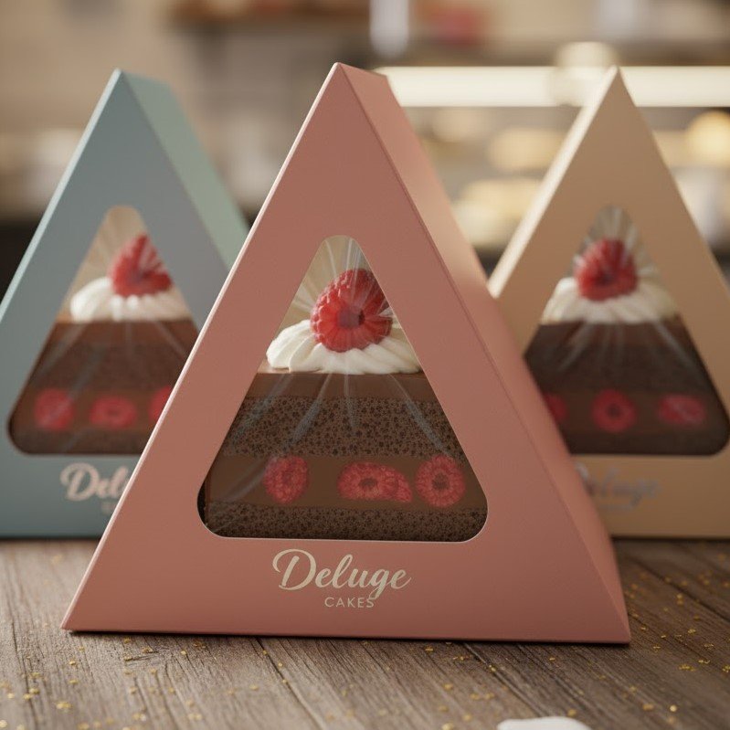 We use durable, food-grade stock for our Cake Slice Boxes, available in various functional shapes (e.g., triangular, rectangular). Customization includes full-color CMYK/PMS printing for stunning brand personality. We offer premium finishes like embossing, debossing, foil stamping, and protective lamination. Functional additions such as window cutouts and handles are also available, ensuring your packaging is safe, visually tempting, and perfectly tailored to your bakery treats.