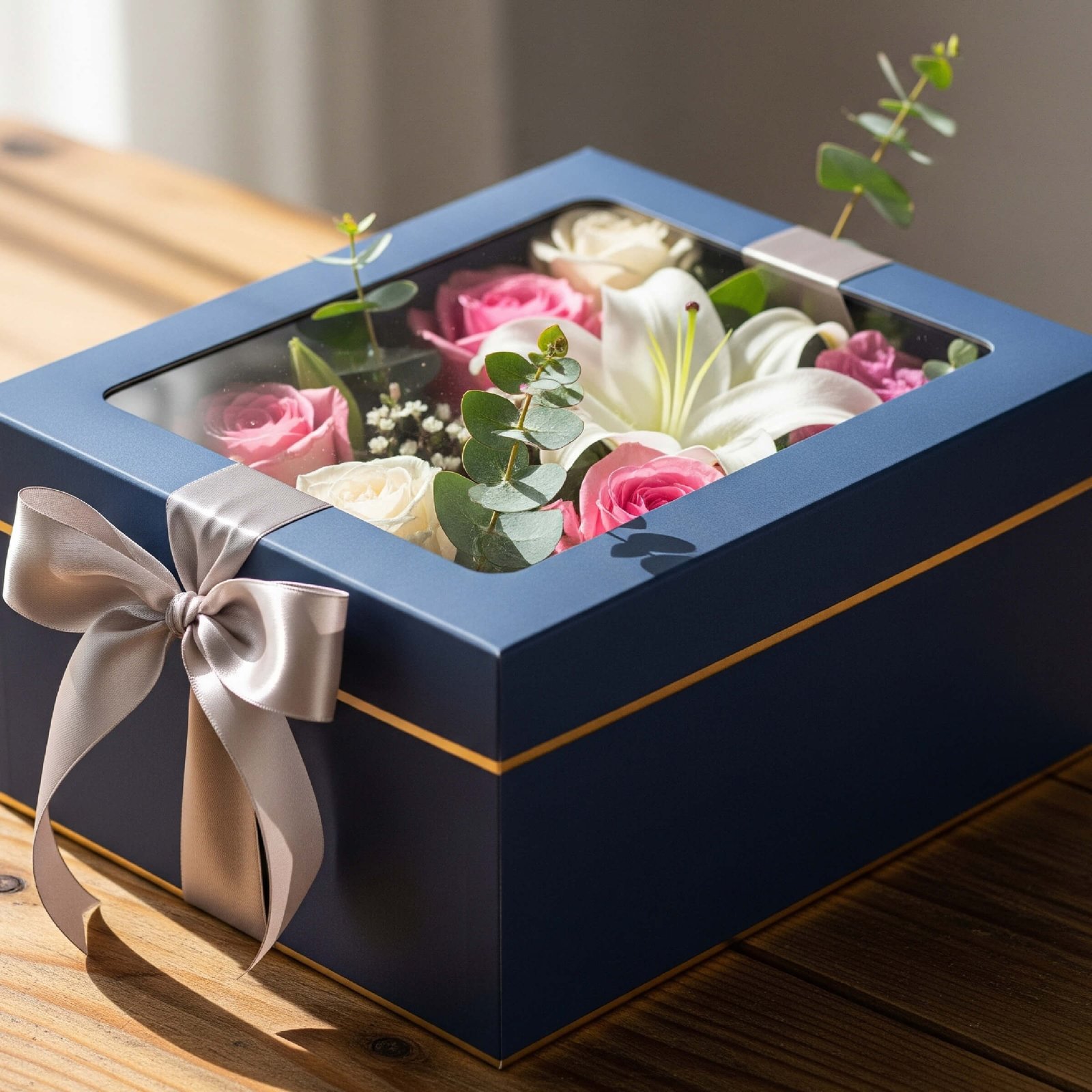 Cardboard: Affordable and functional, cardboard offers the durability needed for safe handling and transportation. Fully customizable in style, shape, and design, it’s ideal for both floral and wedding gift boxes.